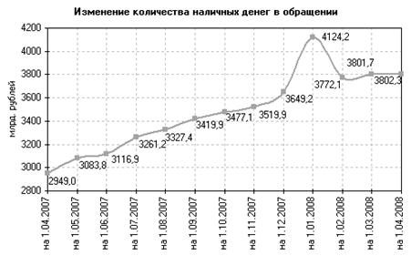 Структура наличной денежной массы в России в обращении по состоянию на 1 апреля 2008 года