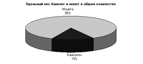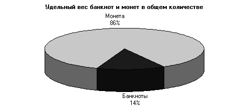 Сумма, количество и удельный вес банкнот и монеты, находящихся в обращении | |||