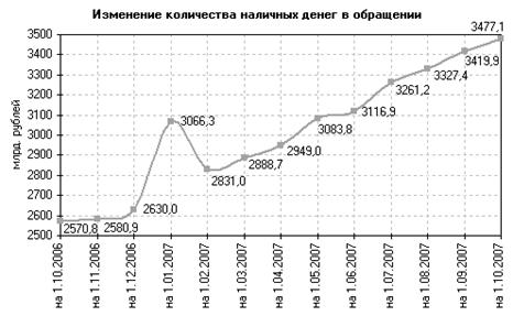 Структура наличной денежной массы в России в обращении по состоянию на 1 октября 2007 года