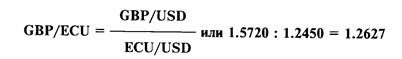Например, нам необходимо найти кросс-курс фунта стерлингов к ЭКЮ — GBP/ECU. Правило расчета такой дроби через долларовые курсы этих валют приводит нас к следующей формуле: