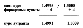 Часто также встречается котировка 0/4 или —4/0, обозначаемая также как раг/4 или 4/раг. К котировкам применяются аналогичные арифметические действия для получения форвардного курса.