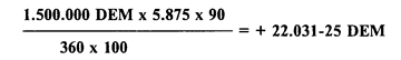 Одновременно банк разместил депозит в немецких марках в третьем банке под 5.875 процентов с 18.01.95 г. по 18.04.95 г. Размер полученного 18 апреля процента в марках составит:
