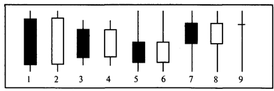 Для анализа движения курса с применением свечек используется 9 основных форм:
