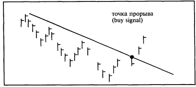 Точка прорыва для подтвержденной смены восходящего тренда образует сигнал к продаже (sell signal); подтвержденная смена нисходящего тренда образует сигнал к покупке (buy signal).