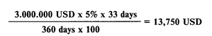 фунта стерлингов (GBP), ирландского фунта (IEP), бельгийского франка (BEF), сингапурского доллара (SGD), гонконгского доллара (HKD), южноафриканского рэнда (ZAR). Например, дилеру коммерческого банка необходимо рассчитать сумму процентов, ожидаемых на дату окончания месячного депозита в 3 млн. долларов США, размещенного под 5 процентов годовых с 21 декабря 1994 г. по 23 января 1995 г. По формуле простого процента получается: