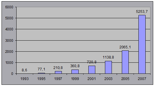 Рис. 2.1. Доходы системы ОМС на территории Удмуртской Республики за 1994–2007гг. (руб.)