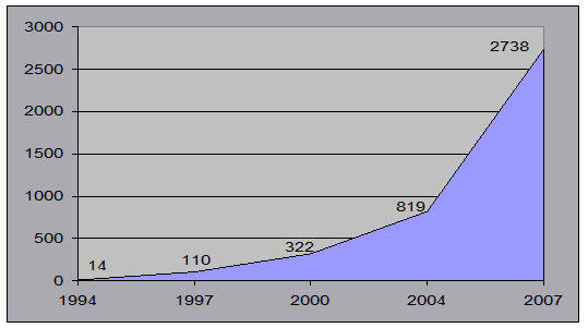 Обеспеченность средствами ОМС в расчете на 1 жителя республики при оплате медицинской помощи по территориальной программе ОМС увеличилась в 196 раз (с 14 руб. 1994 году до 2738 руб. в 2007 г) и достигла уровня показателя по РФ. (рис.2.2). Объем финансовых средств, направленных на оплату территориальной программы ОМС увеличилась сс21,9 млн. руб. В 1994 году до 4056,2 млн. руб. в 2007 году. С 2006 года оплата медицинской помощи осуществляется по тарифам включающих 5 статей: заработная плата с начислениями, медикаменты и расходные материалы, питание, мягкий инвентарь и обмундирование. Фондом принимались меры по выравниванию условий оказания медицинской помощи по Территориальной программе ОМС, улучшению ее качества и демографической ситуации в УР, укреплению первичного звена здравоохранения.