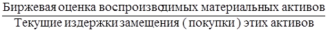 Если дробь больше единицы, то инвестирование выгодно. Причем, чем больше, тем выгоднее. Так, рост рыночной (биржевой) оценки домов по отношению к текущей стоимости их строительства стимулирует жилищное строительство, поскольку рыночная цена больше, чем текущие издержки замещения данного дома на новый.