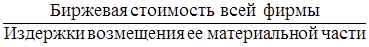 Таким образом, выгодность инвестирования привязывается к соотношению между ценой спроса и ценой предложения. Так, в случае инвестирования в покупку целого предприятия (фирмы) определяем: