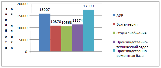 Анализируя среднюю заработную плату в разрезе подразделений видно, что самая высокая заработная плата в подразделении производственно-ремонтной базы и административно-управленческого персонала.