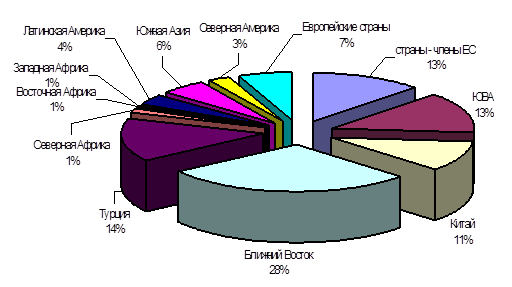 Анализ показывает, что наиболее перспективными за отчетный период были поставки металлопродукции на рынки стран Ближнего Востока – 33,49% от общего объема экспорта (рис. 3.3).