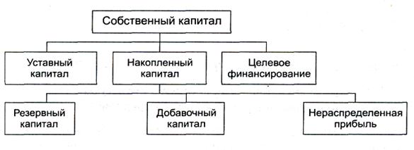 Основной источник финансирования — собственный капитал (рис. 4.1). В его состав входят уставный капитал, накопленный капитал (резервный и добавленный капитал, нераспределенная прибыль) и прочие поступления (целевое финансирование, благотворительные пожертвования и др.).[13]