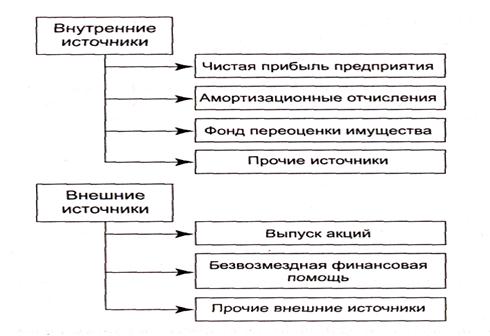 Капитал предприятия формируется за счет собственных (внутренних) и заемных (внешних) источников.