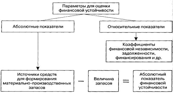 В ходе производственного процесса на предприятии происходит постоянное пополнение запасов товарно-материальных ценностей. В этих целях используются как собственные оборотные средства, так и заемные источники (краткосрочные кредиты и займы). Изучая излишек или недостаток средств для формирования запасов, необходимо установить абсолютные показатели финансовой устойчивости (рис. 4.5).[9]