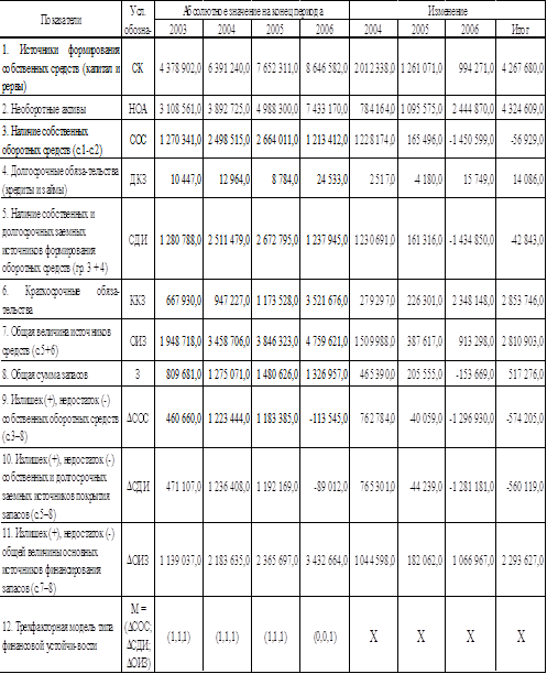 Приведенные показатели обеспеченности запасов соответствующими источниками финансирования трансформируются в трехфакторную модель (М):