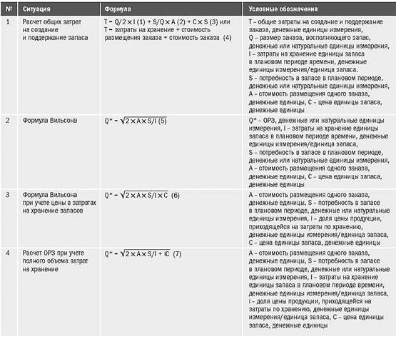 Для того чтобы учесть и ту и другую сторону затрат, связанных с содержанием запаса на складах, можно объединить составляющие затрат на складирование. Аналитическая обработка суммы затрат на складскую обработку и потерь от замораживания капитала в общих затратах, связанных с содержанием запасов, приводит к формуле 7.