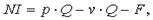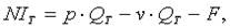 Более общая схема рассуждения имеет следующий вид. Пусть p - цена единицы продукции, а Q - объем производства за некоторый промежуток времени. Запишем основное уравнение модели, символизирующее тот факт, что прибыль до выплаты налогов NI определяется суммарной выручкой за вычетом всех постоянных и переменных издержек