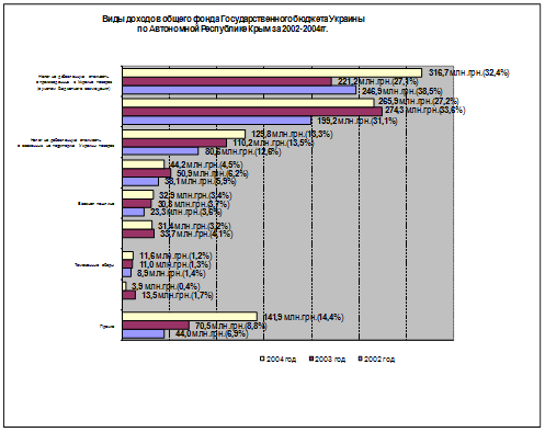 Установленный на 2004 год план поступления доходов в общий фонд Государственного бюджета Украины в сумме 918,8 млн.грн. выполнен на 106,5% (приложение 10). По сравнению с 2003 годом поступления в общий фонд Государственного бюджета увеличились на 20,0%.