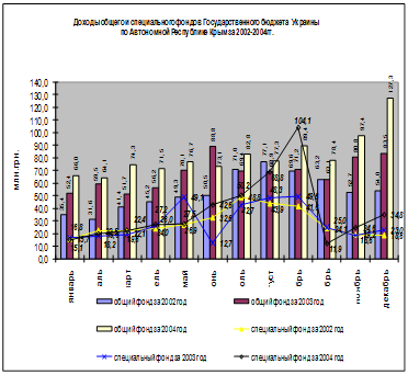 Наибольшие суммы поступлений доходов специального фонда Государственного бюджета получены: в 2002 году – в июле – 48,8 млн.грн., в 2003 году – в сентябре 49,6 млн.грн., в 2004 году – в сентябре – 104,1 млн.грн.