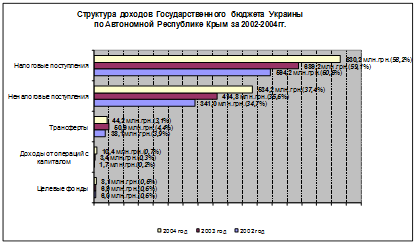 По сравнению с 2003 годом поступления в Государственный бюджет Украины возросли на 22,5%, или на 261,9 млн.грн., по сравнению с 2002 годом – на 45,5%, или на 446,1млн.грн.