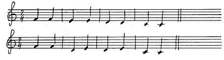 Затем следует то же задание, но силу громкости обозначаем музыкальными терминами: p; f; p f; f p.