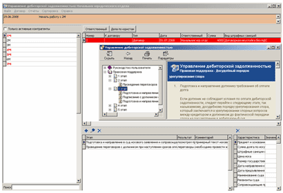 · Возможность контролировать и управлять работой сотрудников менеджменту компании (сквозная цепочка вертикальных взаимоотношений: руководитель – начальник юридического отдела - юрист - бухгалтер) посредством выдачи заданий для каждого пользователя и выводом результатов и комментариев ответственных лиц;