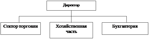 Общее руководство деятельностью предприятия осуществляет директор, несущий всю полноту ответственности за результаты финансовой деятельности и соблюдение законодательства. В подчинении директора находится заместитель директора по торговле и сбыту, заместитель директора по хозяйственной части и главный бухгалтер. Соответственно, заместитель директора по торговле и сбыту подчинен весь торговый персонал и работник склада. Заместителю директора по хозяйственной части подчиняются охранная служба, а также обслуживающий персонал. Главному бухгалтеру подчинены работники бухгалтерии. Главный бухгалтер осуществляет контроль за документированием хозяйственных операций, за составлением расчетов по налогам и сборам и предоставлением их в налоговые органы, а также занимается составлением бухгалтерской отчетности. Заместитель директора по торговле и сбыту осуществляет непосредственно контроль за торговой деятельностью.