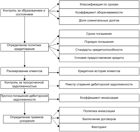 Управление дебиторской задолженностью включает в себя следующие направления деятельности: