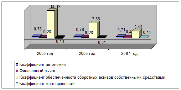 Рис. 5. Динамика коэффициентов финансовой устойчивости ООО «Рос-Таргет» за 2005-2007 год