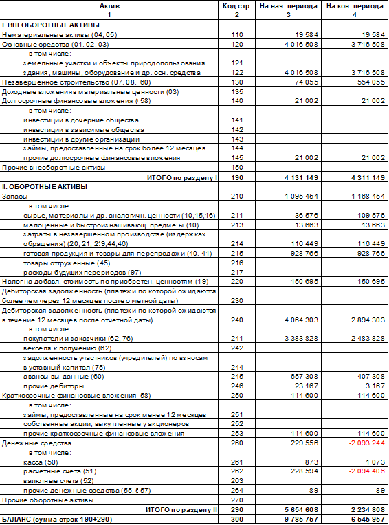 Таблица 2 - Бухгалтерский баланс, руб.