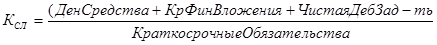 Этот коэффициент показывает, достаточно ли у предприятия средств, которые могут быть использованы для погашения его краткосрочных обязательств в течение определенного периода.