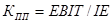 где EBIT – прибыль до уплаты процентных платежей и налогов, руб.; IE – процентные платежи по кредитам, руб.