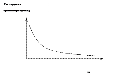 И расходы по доставке, и расходы по хранению зависят от размера заказа, однако, характер зависимости каждой из этих статей расходов от объема заказа разный. Расходы по доставке товаров при увеличении размера заказа, очевидно уменьшаются, так как перевозки осуществляются более крупными партиями и, следовательно реже. График этой зависимости, имеющей форму гиперболы, представлен на рис. 7.