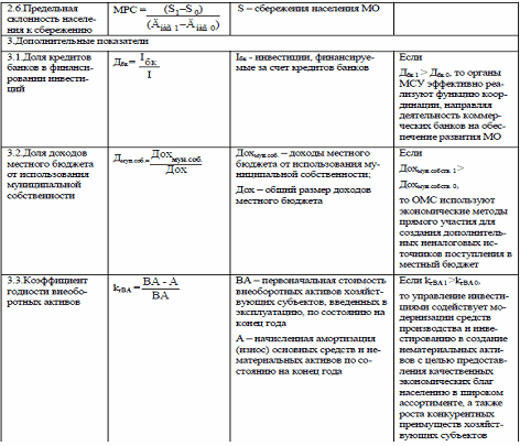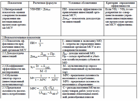 Таблица 2. Показатели оценки эффективности совершенствования управления инвестиционными процессами органами МСУ»