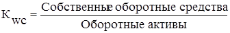 Коэффициент обеспеченности текущей деятельности собственными оборотными средствами. Он показывает, какая часть оборотных активов финансируется за счет собственных средств предприятия и рассчитывается по формуле:
