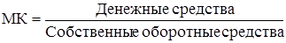 Маневренность собственных оборотных средств. Характеризует ту часть собственных оборотных средств, которая находится в форме денежных средств, т.е. средств, имеющих абсолютную ликвидность: