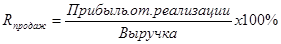 На основе финансовых показателей (табл. 4) расчитаем рентабельность продаж.