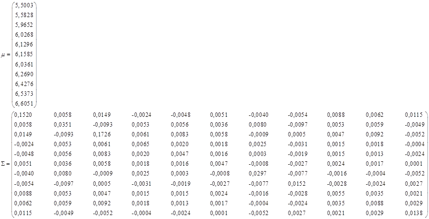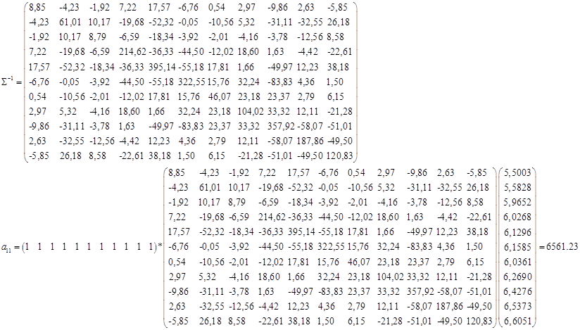 Теперь, используя вышеприведенные формулы, проведем расчет оптимального портфеля ценных бумаг.