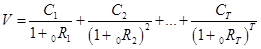- текущая стоимость платежа за период t (t=l, 2, ., Т), которую можно рассматривать как текущую стоимость t-периодной бескупонной облигации.