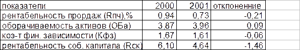 Таблица 14 – Исходные данные для анализа рентабельности собственного капитала в 2000-2001