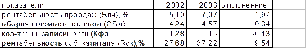 Резкое увеличение рентабельности собственного капитала произошло в 2002 году по сравнению с 2001. На протяжении всего анализируемого периода наблюдается рост показателя рентабельности собственного капитала, что свидетельствует о более эффективном использовании последнего.