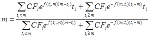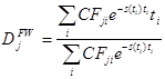 где J – число выпусков облигаций, обращающихся на рынке, j – порядковый номер выпуска, xj – доля вложений в облигации выпуска j в рыночной стоимости портфеля, CFji – размер денежных поступлений по облигации выпуска j в момент времени ti,