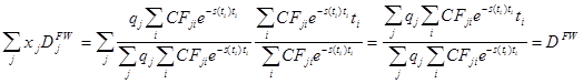Дюрация портфеля равна скалярному произведению векторов долей вложений в облигации различных выпусков xj и их дюраций