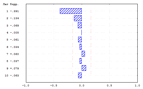Рис.2.3.2. Автокорреляционная функция первой разности