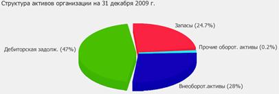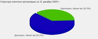 Из представленных в первой части таблицы данных видно, что на последний день анализируемого периода (31.12.2009) в активах организации доля иммобилизованных средств составляет одну треть, а текущих активов – две третьих. Активы организации за рассматриваемый период увеличились на 552 963 тыс. руб. (на 12,4%). Хотя имело место увеличение активов, собственный капитал уменьшился на 187,1%, что негативно характеризует динамику изменения имущественного положения организации.