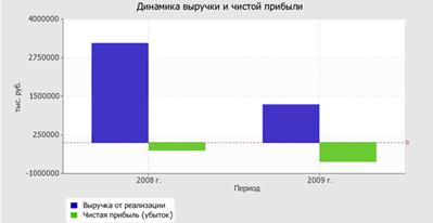 Из "Отчета о прибылях и убытках" следует, что за рассматриваемый период (01.01-31.12.2009 г.) организация получила убыток от продаж в размере 138 660 тыс. руб., что равняется 11,3% от выручки. Данный результат кардинально отличается от аналогичного периода прошлого года, когда имела место прибыль в размере 29 412 тыс. руб.