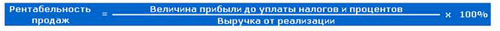 Net profit margin - соотношение прибыли за период к реализации. Коэффициент операционной эффективности, используемой в целях сравнения, поскольку разница, вызванная способами финансирования конкретного предприятия, не влияет на его величину.