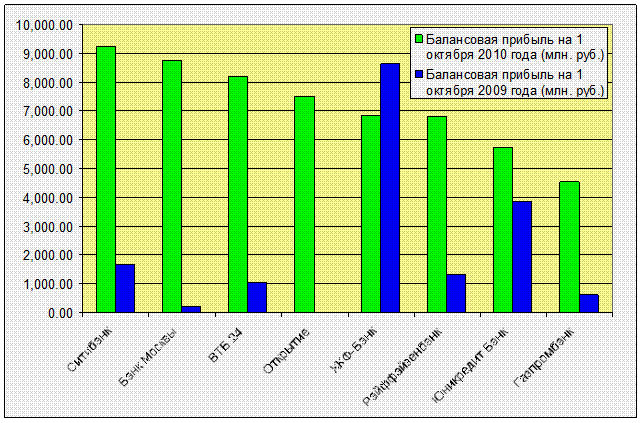 Топ 10 прибыльных банков по состоянию на 1 октября 2010 года представлены в таблице 9.