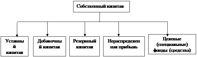 Собственный капитал состоит из уставного, добавочного и резервного капитала, нераспределенной прибыли и целевых (специальных) фондов (рис.1). Коммерческие организации, функционирующие на принципах рыночной экономики, как правило, владеют коллективной или корпоративной собственностью.