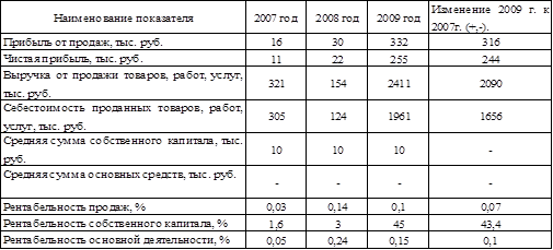 Коэффициенты рентабельности предприятия в динамике показывают, что в 2009 году рентабельность понизилась на 0,1%, составив 0,15 % . Это отрицательная тенденция в развитии предприятия, так как рентабельность основной деятельности в 2007г. составляла всего -0,05%.